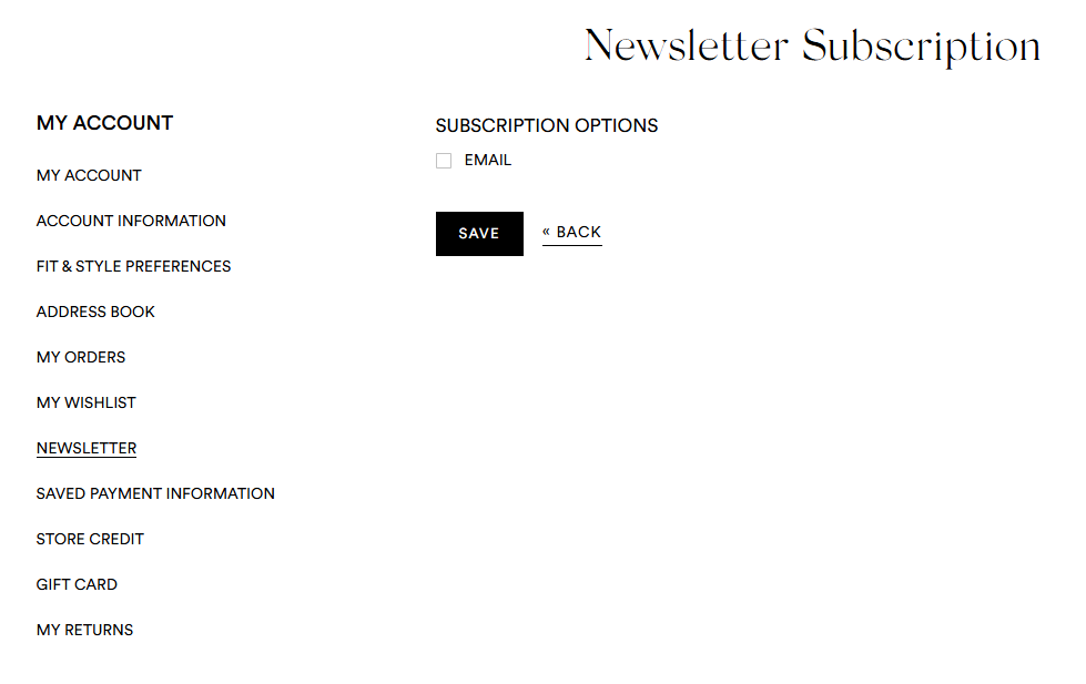 Alternatively, you can select your choice directly from your account by either checking or unchecking the subscription options in the Newsletter section.