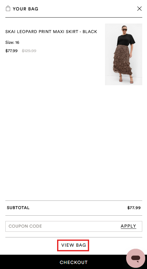 Click the Bag icon and select View Bag.